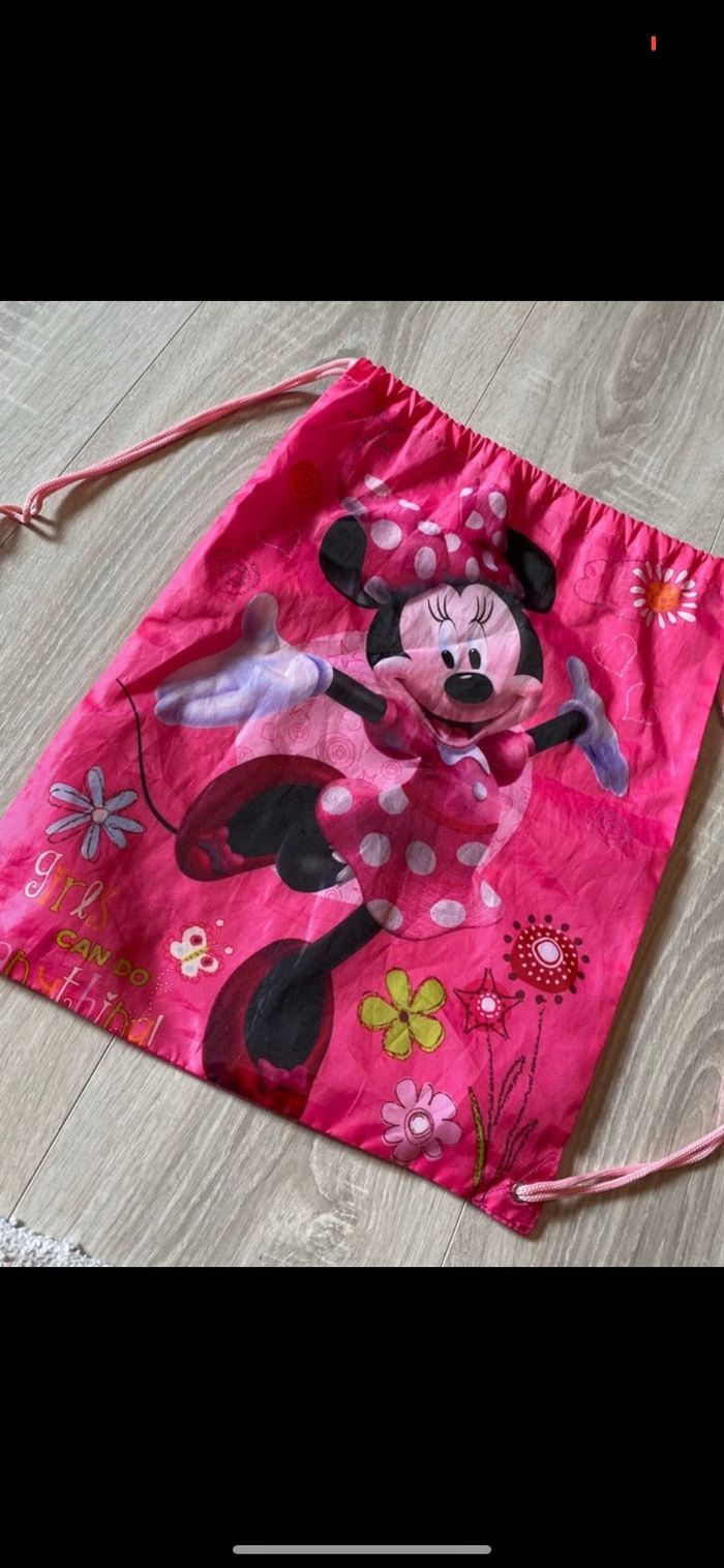 Je vends un sac à dos Minnie rose Se ferme en tirant sur 2 cordes.