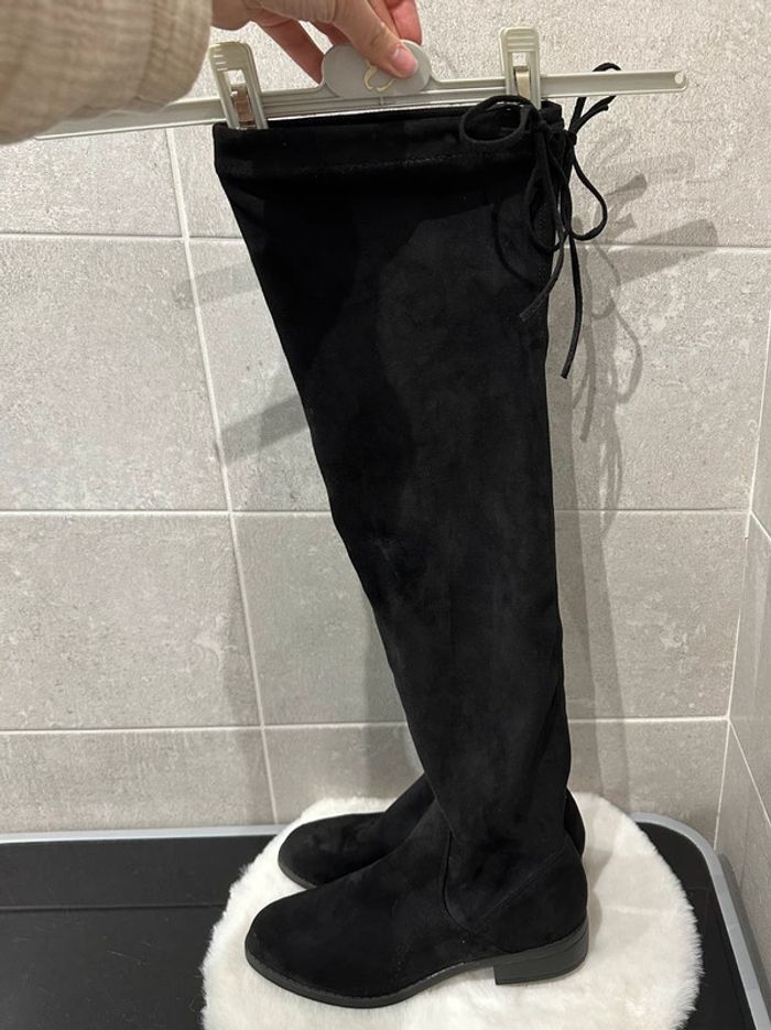 Je vend une paire de cuissardes femme - porte 1 seule fois - très bon état - pointure 37 - liens en haut qui permet de resserrer pour ne pas perdre les cuissardes en marchant - Pimkie - couleur noir #cuissardes #cuissardesnoires #pimkie #femme #cuissardespimkie #cuissardesfemme #daim