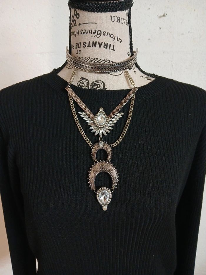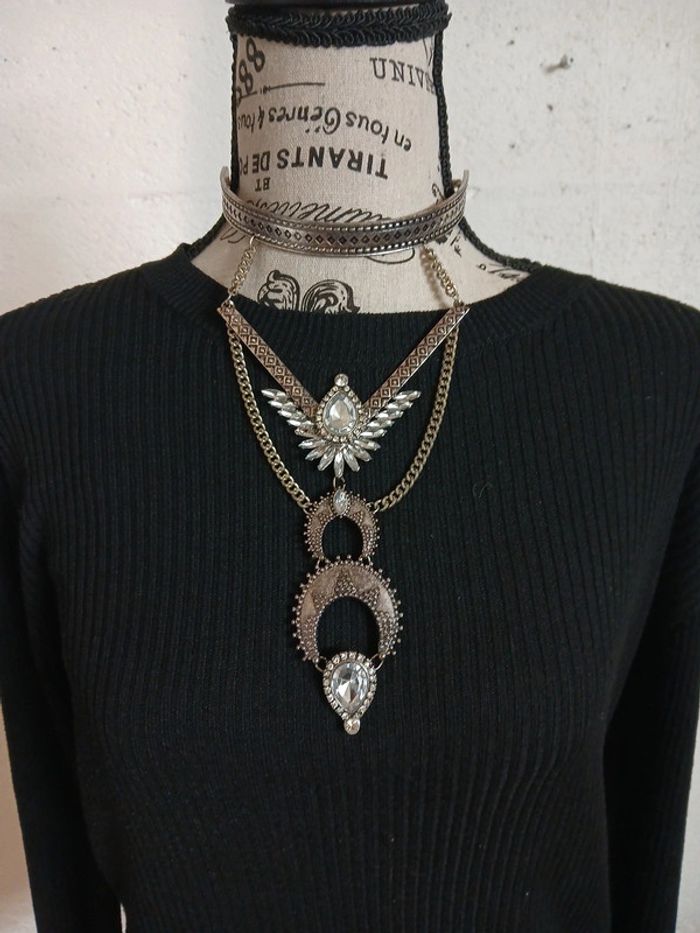 Collier métal gris Bon état Longueur à partir du tour du cou 21 cm