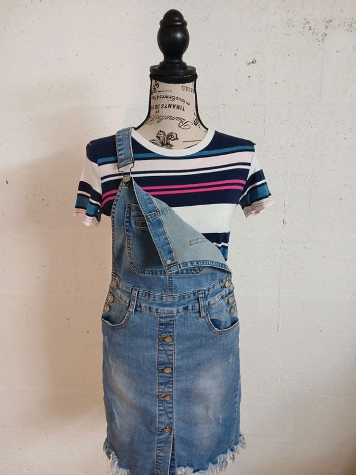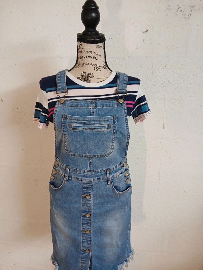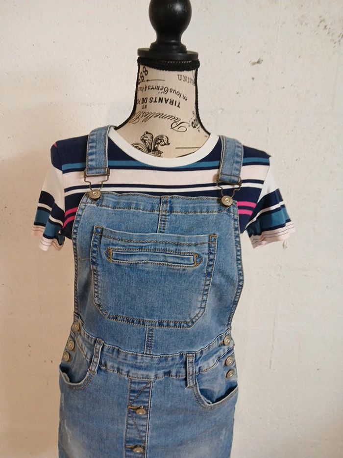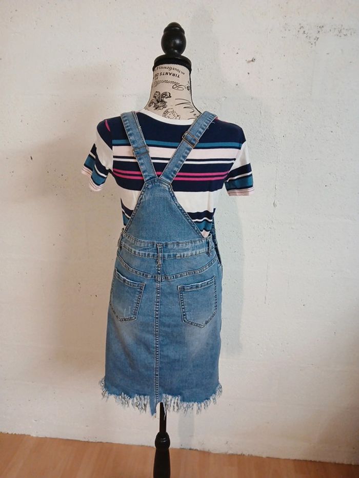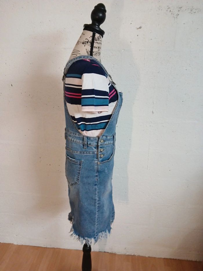Robe en jeans style usé/ déchire Bretelles réglables Marque VS MISS Taille 36 Largeur au niveau des hanches 39 cm Longueur hors Bretelles 75 cm Autres articles à retrouver en vente séparément dans mon dressing Tshirt bershka xs 🌈 Pensez au lot afin de limiter les frais de port mais aussi pour faire des économies car les réductions sont actives dès 2 articles 😍 🌈