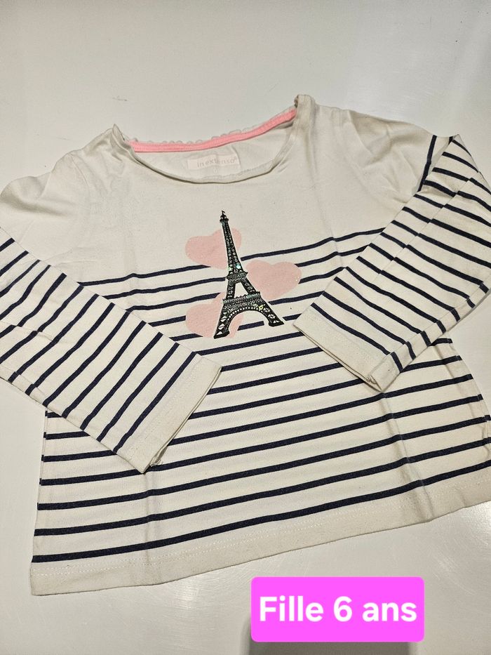 T-shirt manches longues blanc, bleu et rose. Marque : In extenso Taille : 6 ans