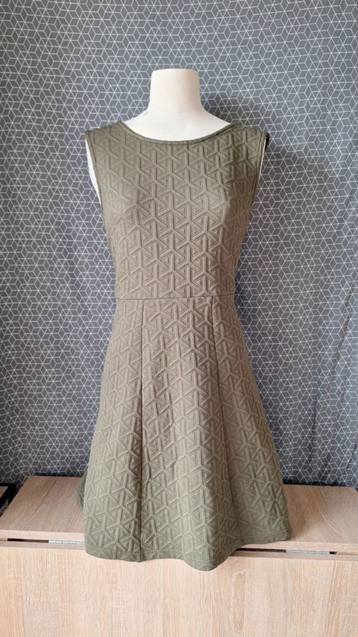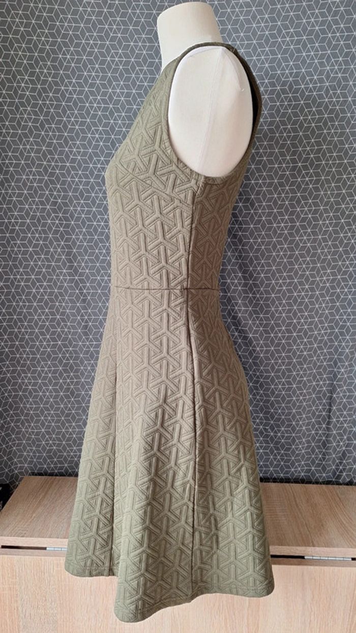 Robe kaki. Ceintré à la taille et évasé en bas. Manches courtes. Chaude. Elégante. Fermeture éclair au dos en parfait état de fonctionnement. Taille L taillant 40. Longueur : 90 cm Largueur épaule : 39 cm Largueur sous aisselle : 45 cm Largueur bas : 73 cm #alexegfemmeL #alexegrobe