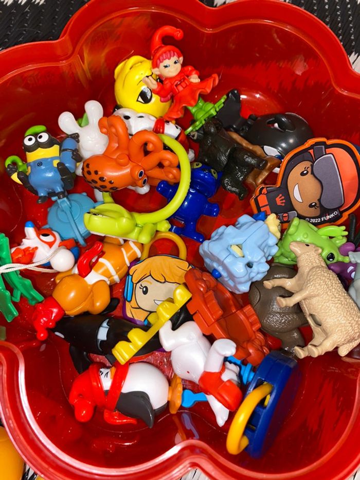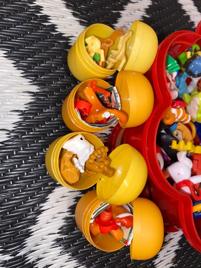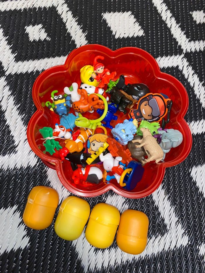 🌸 30 jouets kinder surprise en très bon état ( ma fille les a juste monté mais n’a jamais joué avec ) vendu avec la boîte Chupa chups