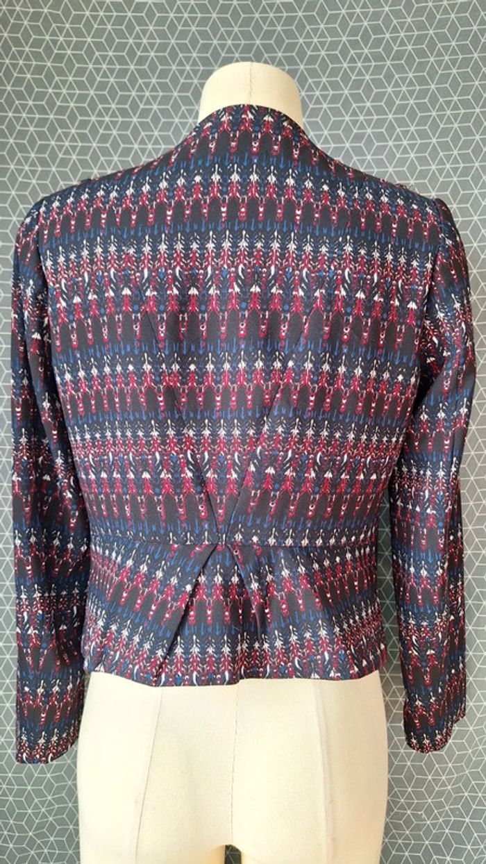 🚫 -50% non applicable en cas de lot 🚫 Veste type tailleur. Elégant. Noir, rouge, bleu et blanc. Deux poches sur le côté à fermeture éclair en parfait état. Épaulettes et décoration aux épaules. Ceintré au dos. Intérieur doublé satiné. Taille 40 taillant 40. Longueur : 50 cm Longueur manches : 55 cm Largueur sous aisselle veste fermé : 44cm Largueur bas veste fermée : 43 cm #alexegfemmeL #alexegblouse