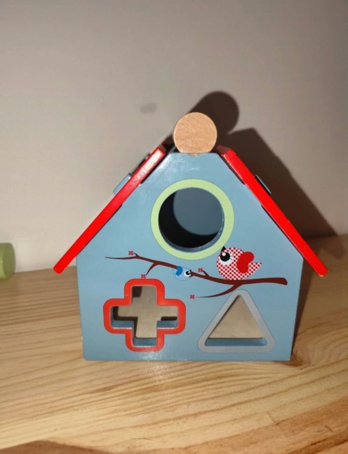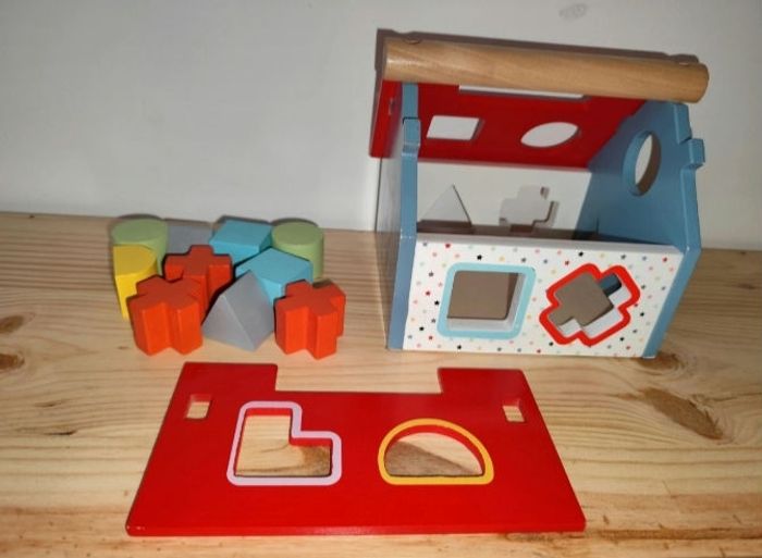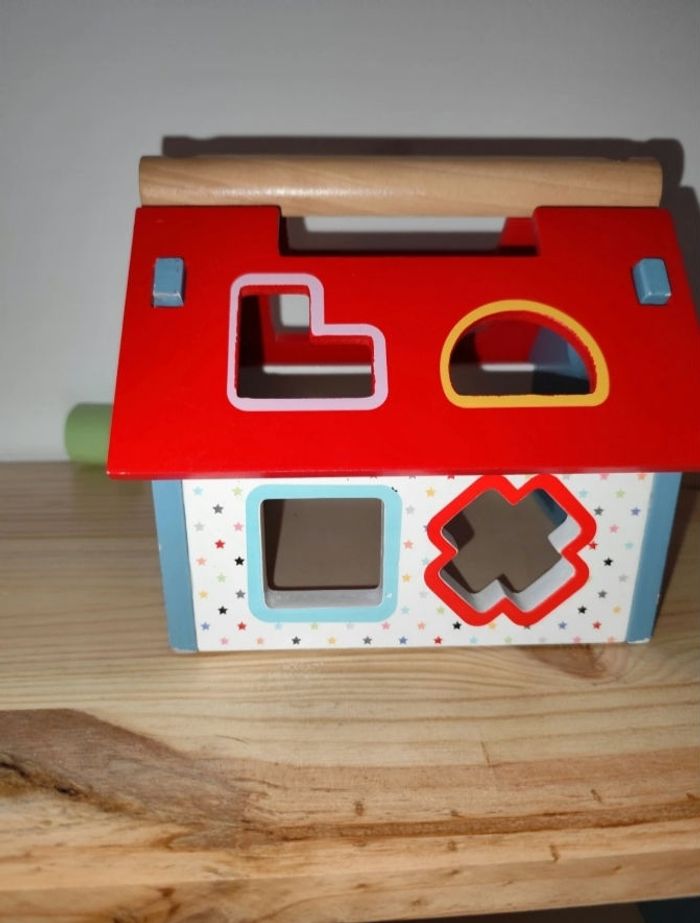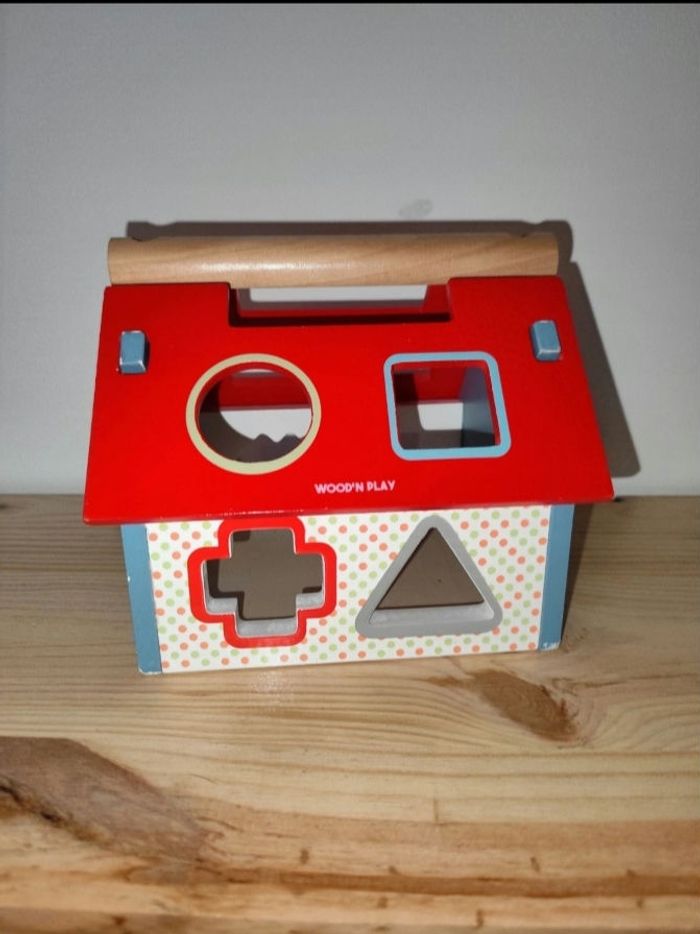 Maison en bois avec formes encastrables, légèrement abîmé a certain endroits ( voir photos).