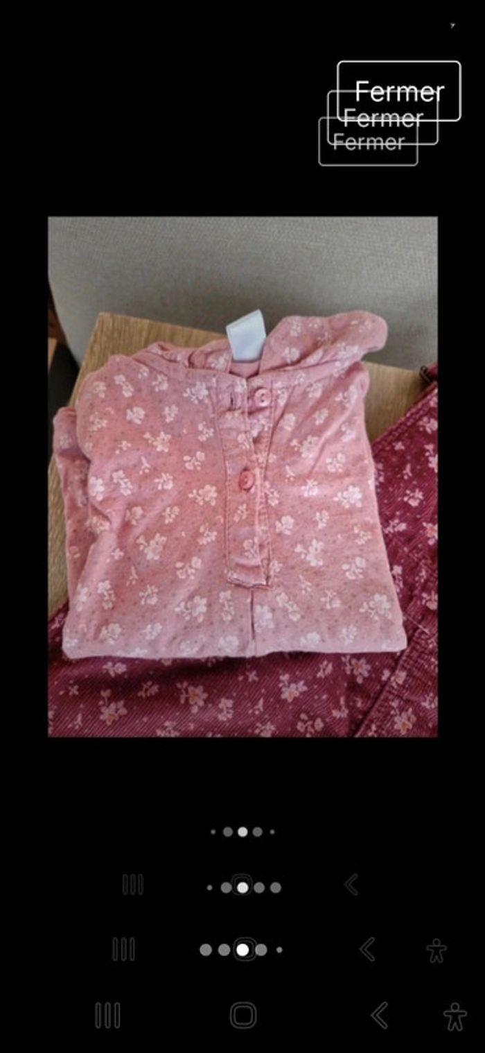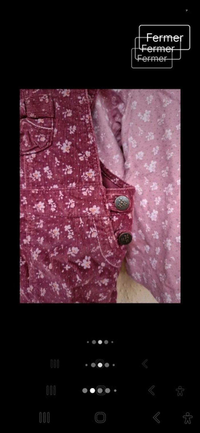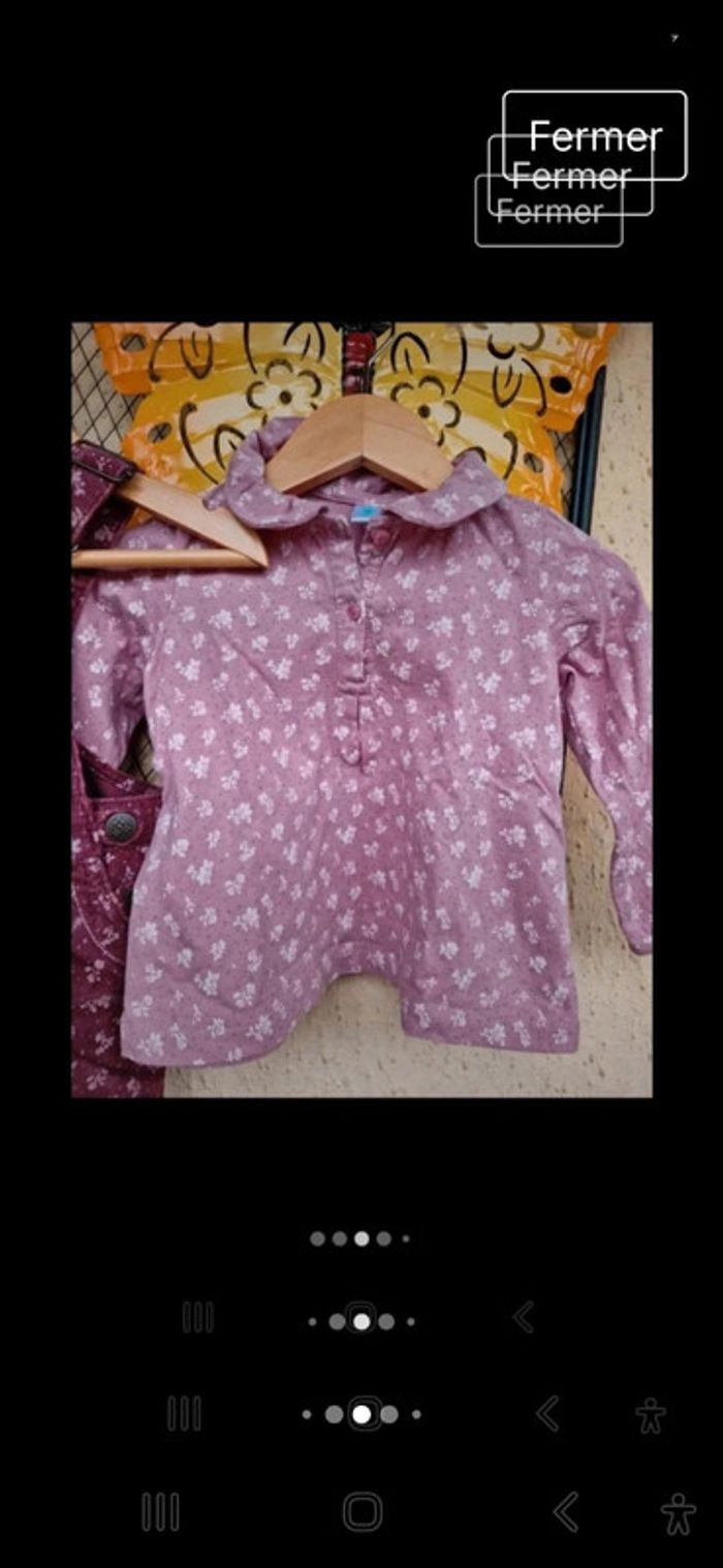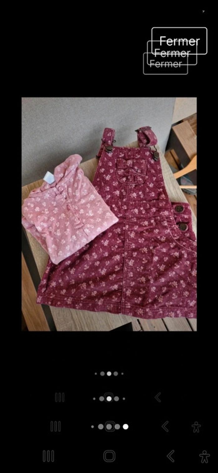 #manouwfille18mois Ensemble fille, Robe salopette, velours ras, couleur bordeaux avec des fleurs. 100% coton Tee shirt fille, couleur pourpre avec des fleurs. 100% coton. Taille 18 mois. Marque TeX baby Très bon état