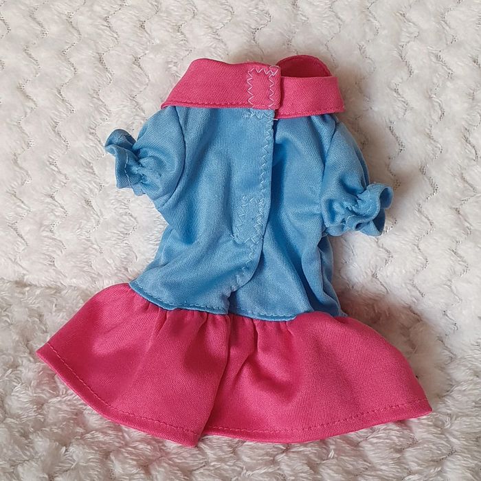Robe vêtement de poupee rose et bleu avec une fleur en forme de cœur brodée dress clothes doll