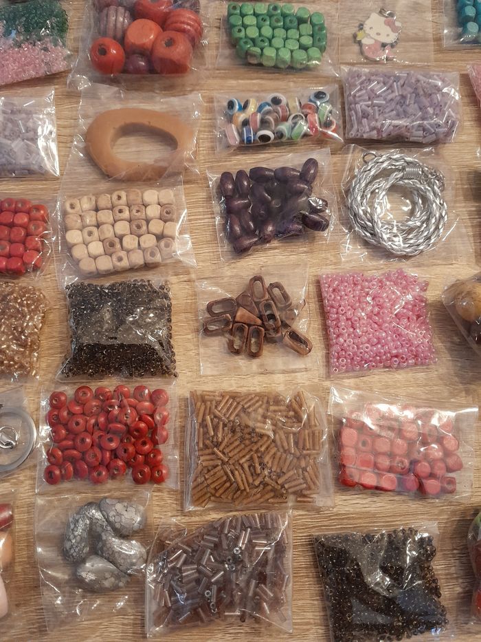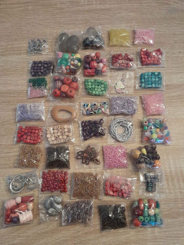 Lot de 40 sachets de perles et accessoires Lot numéro 2 D'autres perles de dispo dans mon dressing n'hésitez pas à jeter un coup d'œil ou à me demander.