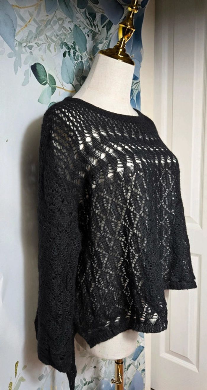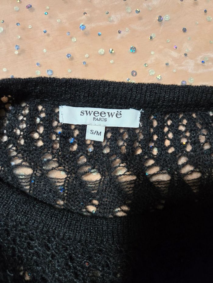 Pull en laine et mohair noir en maille Sweewë - photo numéro 6