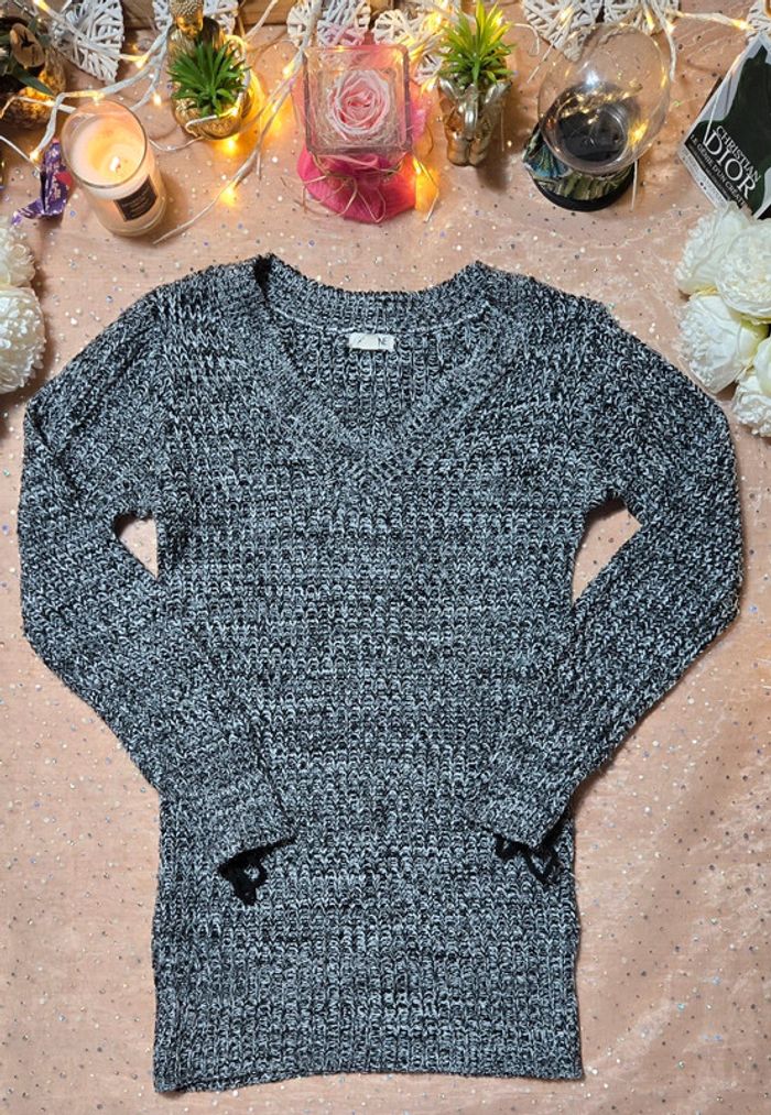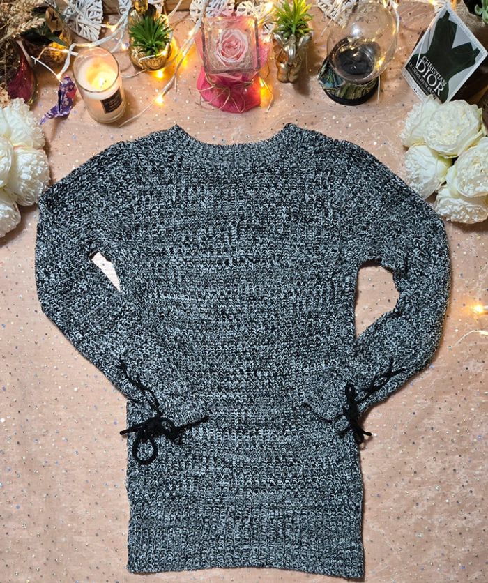 Pull noir &blanc Ardene manches originales avec cordon - photo numéro 1
