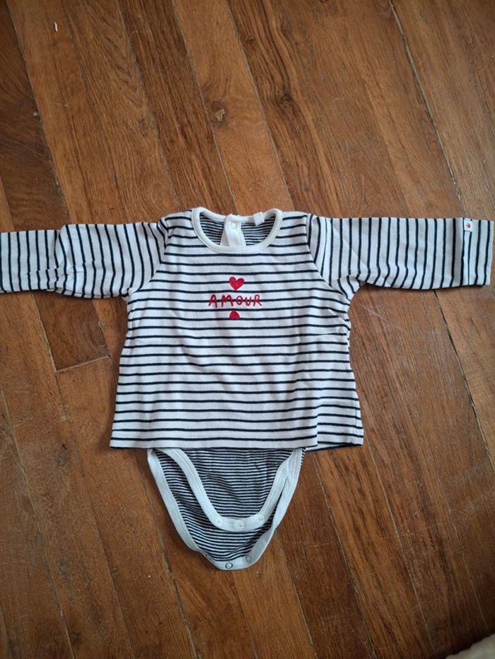 Body t shirt mixte marinière coeur petit bateau 6 mois comme neuf - photo numéro 1