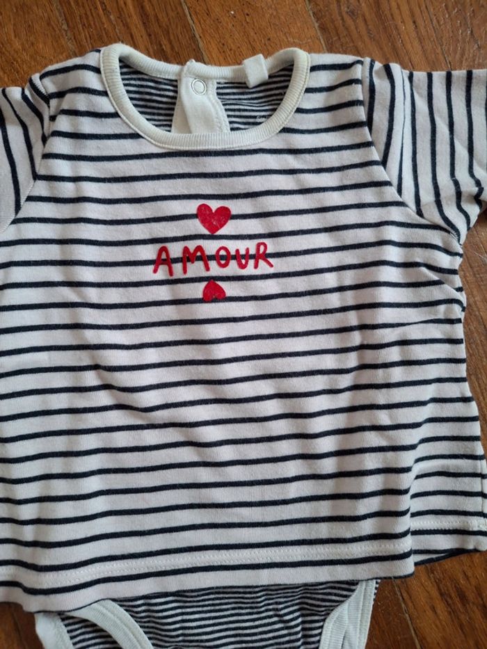 Body t shirt mixte marinière coeur petit bateau 6 mois comme neuf - photo numéro 4