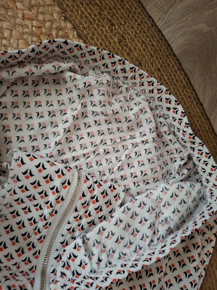 Très peu portée, on peut la considérer comme neuve Non doublée #mollybracken #graphique #Yaya8610 #Yaya861036 #frenchbrand #frenchstyle #vesteété #summer #summerstyle #vestegraphique #vintage #dressingenpromo #reductionsurleslots #blousonteddy #teddy #giletzippé #zip #poches #viscose