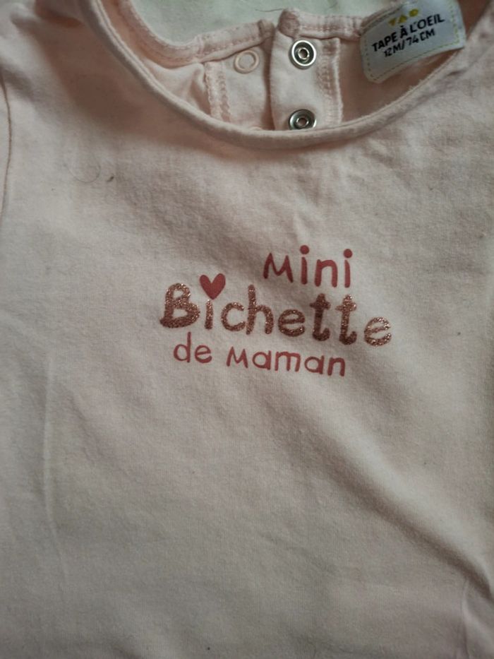 Lot de 2 t shirts manches tape à l'œil  longues fille 12 mois neufs - photo numéro 6