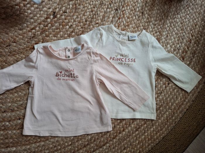 Lot de 2 t shirts manches tape à l'œil  longues fille 12 mois neufs - photo numéro 2