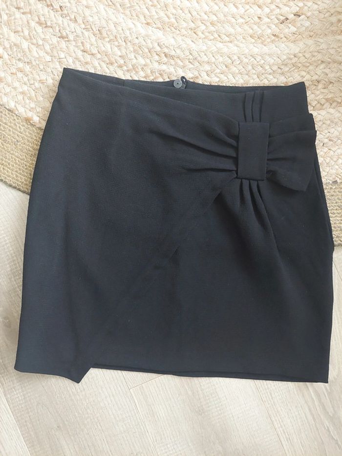 Jupe noire noeud texturée neuve camaieu t38 - photo numéro 1