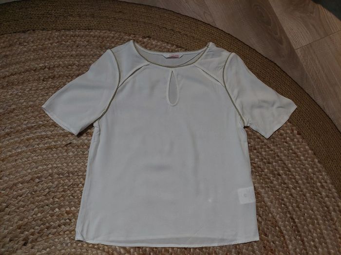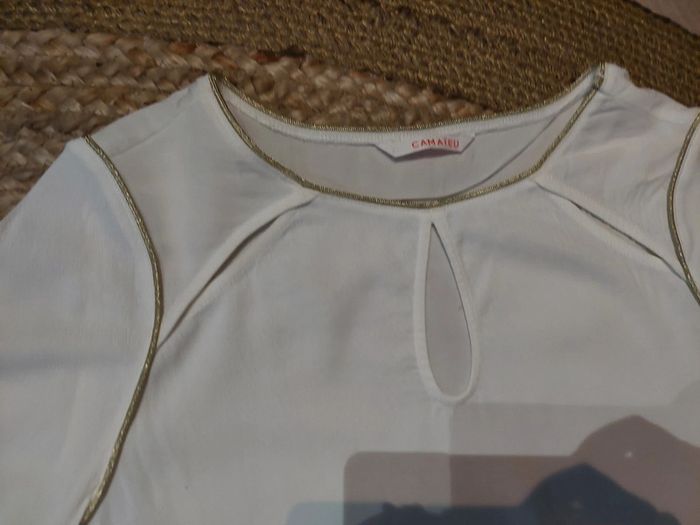 Haut/blouse blanche et dorée Camaïeu neuve t 36 - photo numéro 3