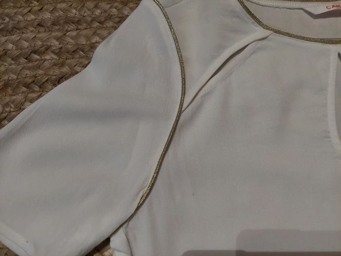 Haut/blouse blanche et dorée Camaïeu neuve t 36 - photo numéro 4