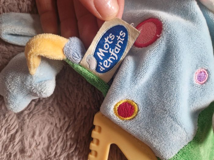 🩵 Petit doudou avec une accroche à scratch, un bout à mordiller, ... 🩵 Marque mots d'enfants