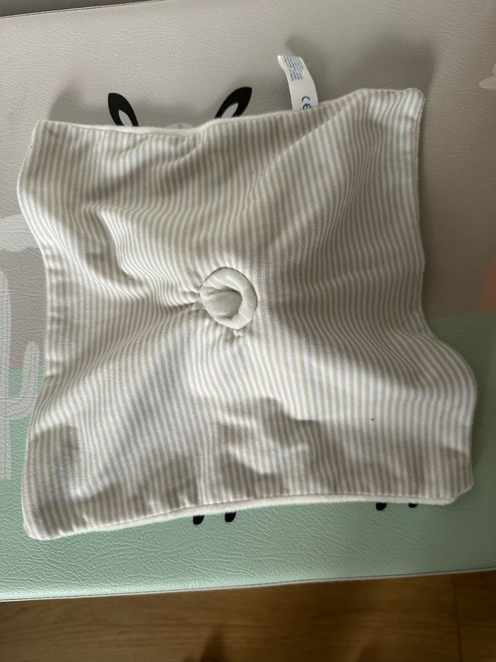 Ce joli doudou plat lapin blanc de la marque sera le compagnon idéal de bébé pour passer des nuits paisibles. Facile à attraper, ce doudou plat lapin tout doux l'accompagnera dès sa naissance. Le doudou n'a jamais été utilisé. Le doudou se transforme en marionnette grâce au trou derrière la tête du lapin Taille 25cm Je n'ai plus la boîte.