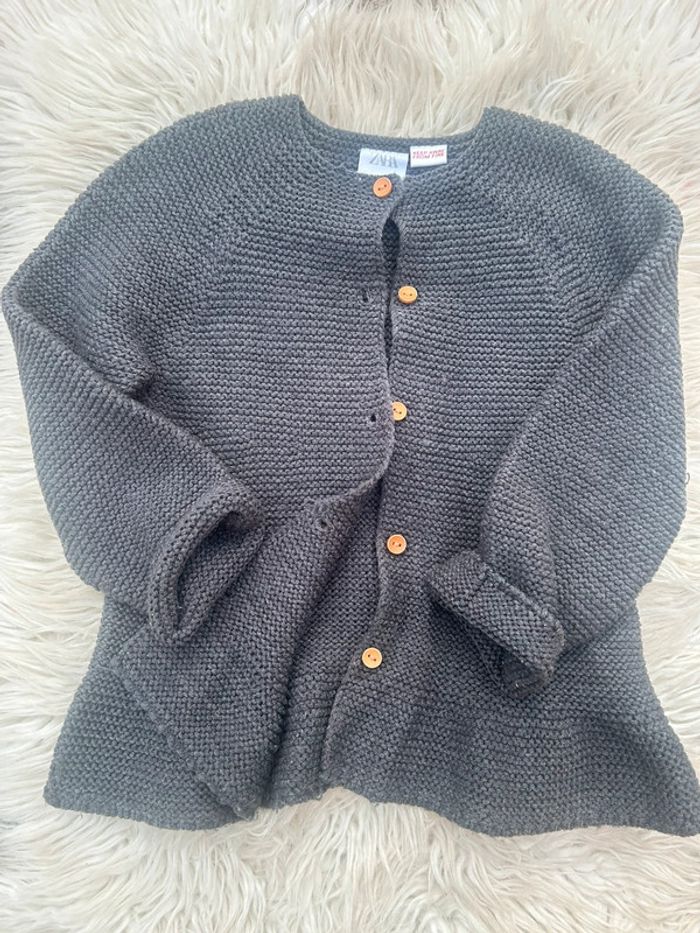 Gilet en maille Gris Évasé sur le bas Bouton en bois Zara taille 5/6 ans #dressvetfille5_6ans 🎀 Merci de lire la description de mon profil avant tout contact ou achat 🎀