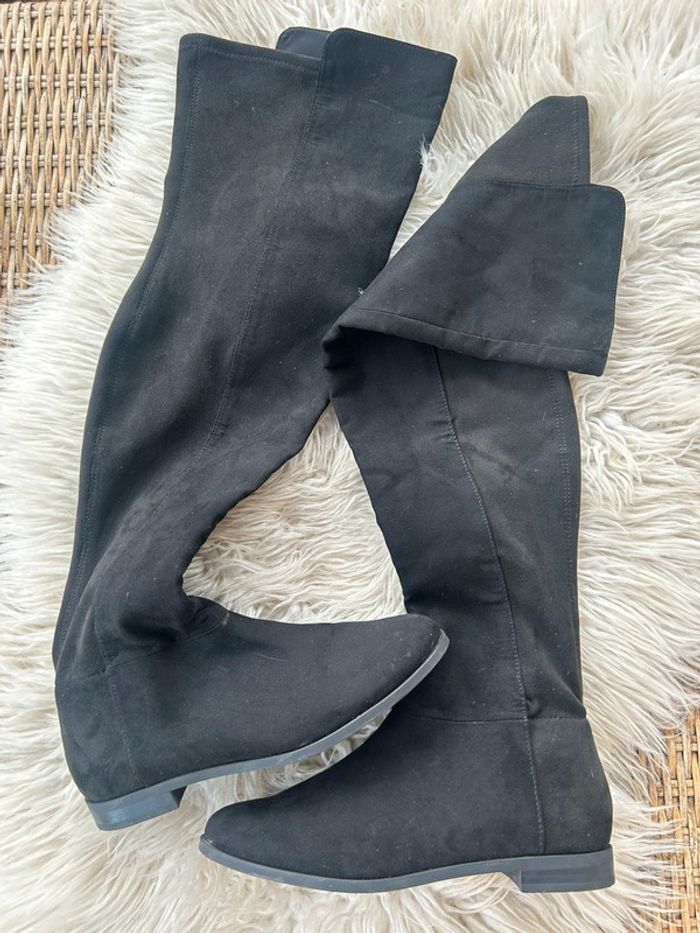 Cuissardes en daim H&M taille 37 Je les vends a contre cœur achetées pendant ma grossesse et j’ai pris une taille de chaussures donc je ne rentre pas dedans Elles sont neuves juste essayées 3/4x mais finalement ca ne va pas Achetées 80€ chez H&M ! #dressvetchaussures 🎀 Merci de lire la description de mon profil avant tout contact ou achat 🎀