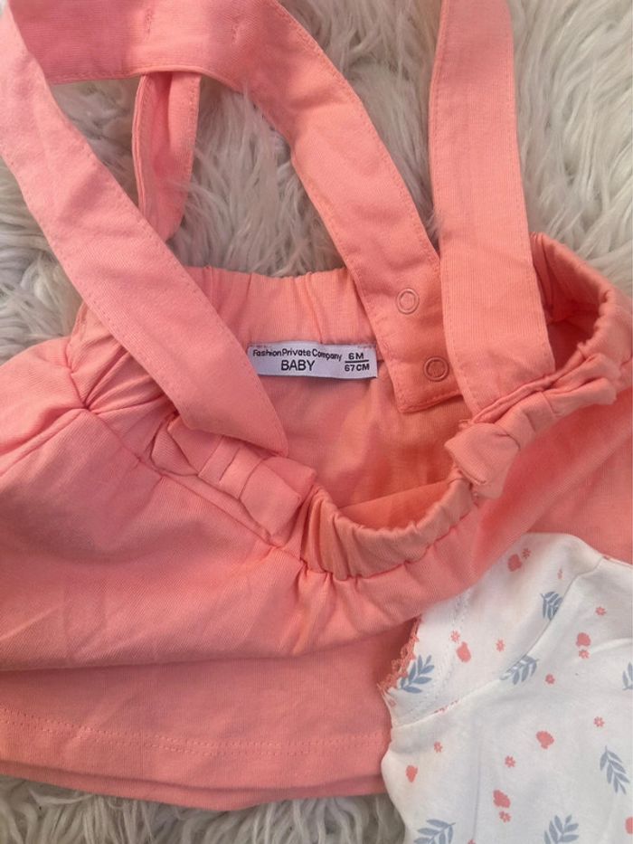 Ensemble printemps/été Taille 6 mois Couleur corail/peche 1 jupe à bretelles 1 tshirt manches courtes 1 legging En tbe #dressvetfille06mois 🎀 Merci de lire la description de mon profil avant tout contact ou achat 🎀