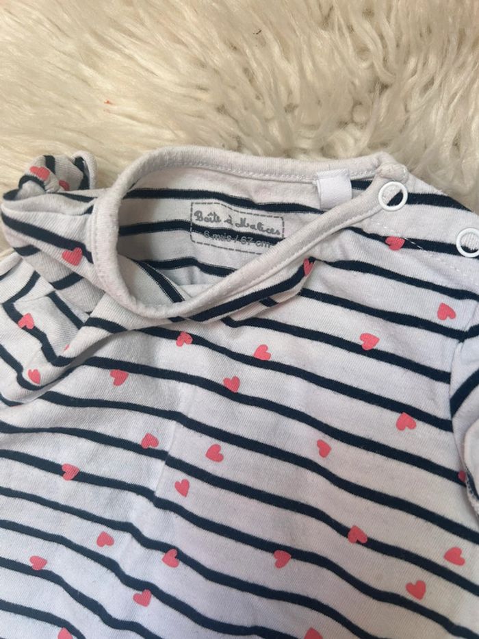 Fille 👧🏻 Ensemble d’été noir & blanc a coeur rose taille 6 mois - boite à malices/kiabi - photo numéro 4