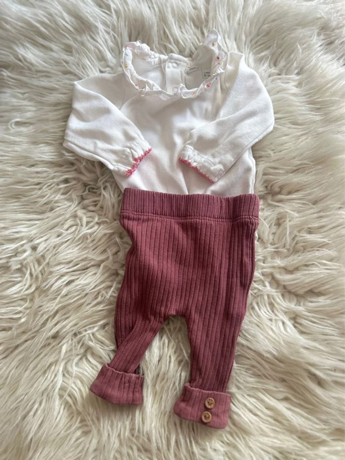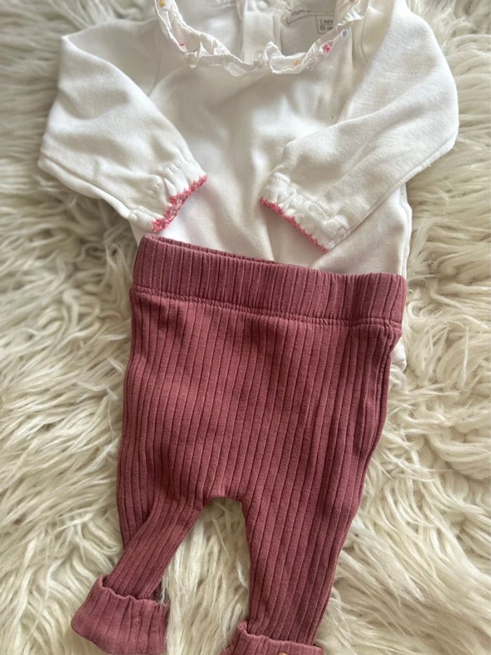 Fille 👧🏻 Ensemble 2 pieces - bodys ml sergent major + legging violet kiabi - taille 1 mois - photo numéro 2