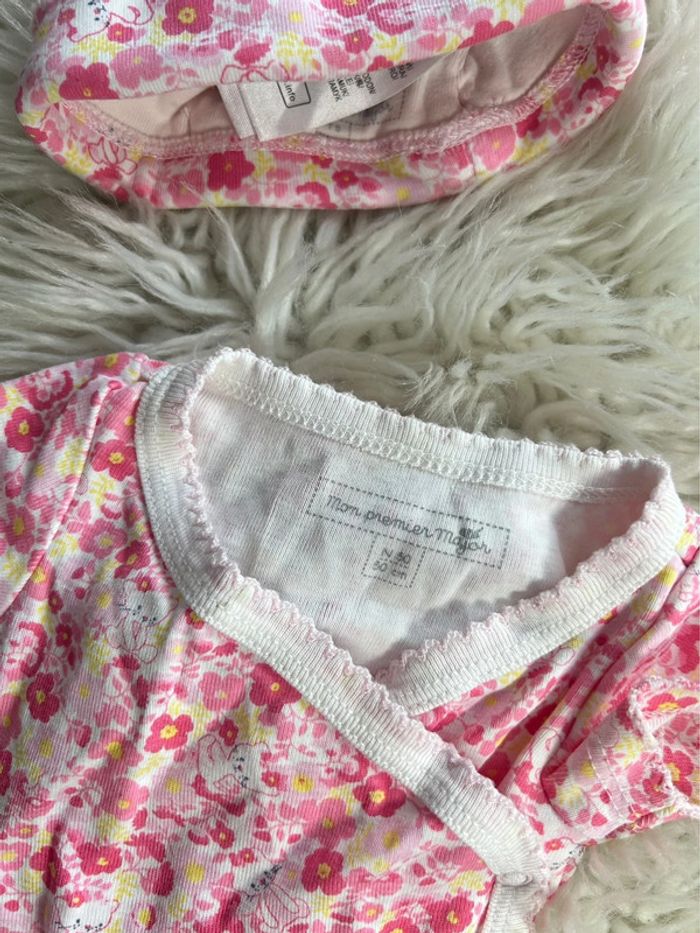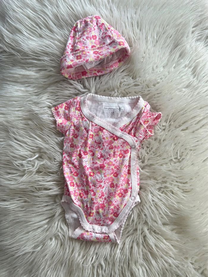 Ensemble 2 pièces Body manches courtes + bonnet Fleuri esprit liberty Sergent major taille 0/naissance #dressvetfille06mois 🎀 Merci de lire la description de mon profil avant tout contact ou achat 🎀