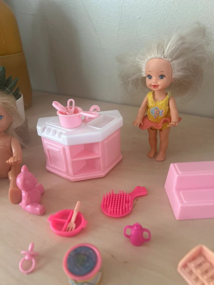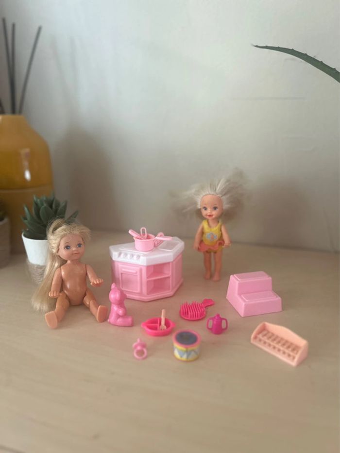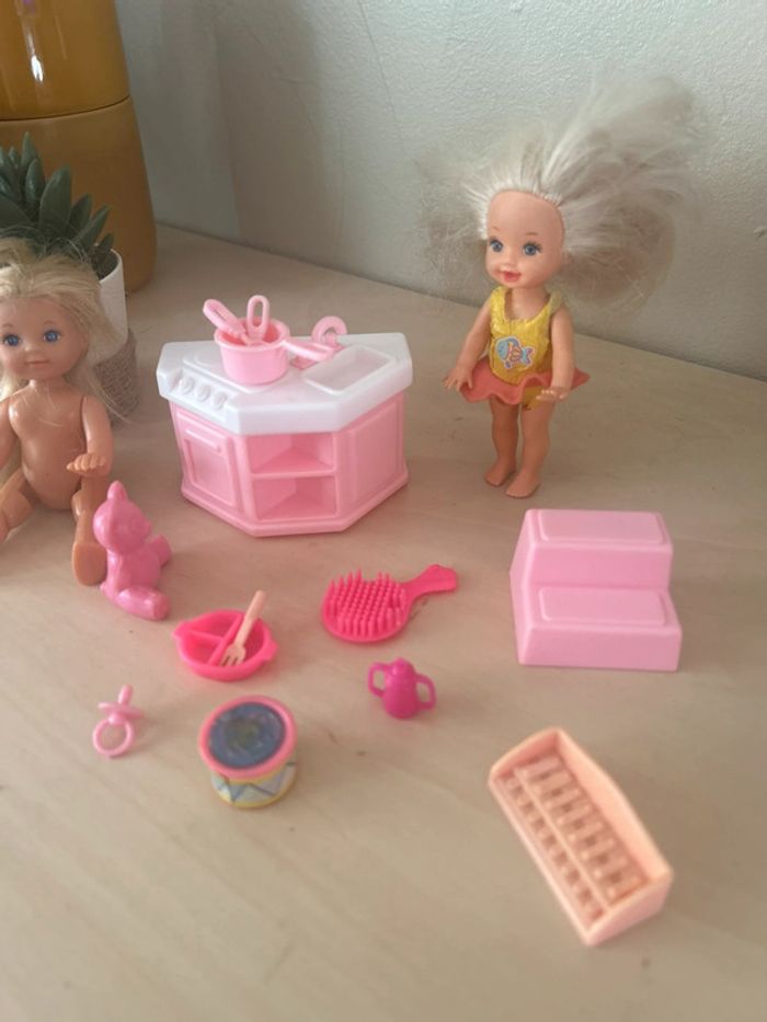 Lot barbie vintage 2 fillettes 1 shelly/ 1 simba 1 cuisine 1 escalier Nombreux jouets et accessoires (assiettes,biberon, hochet,tetine …) Le tout en tbe général #dressvetjouetslivres 🎀 Merci de lire la description de mon profil avant tout contact ou achat 🎀