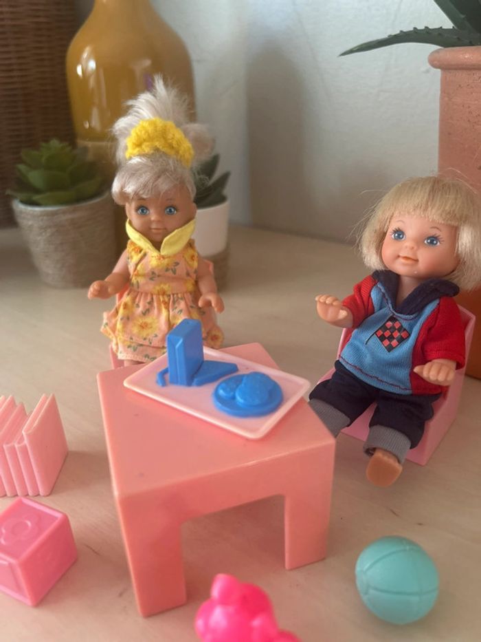 2 enfants « barbie » + vêtements Une table 2 chaises 4 jouets 1 plateau repas #dressvetjouetslivres 🎀 Merci de lire la description de mon profil avant tout contact ou achat 🎀