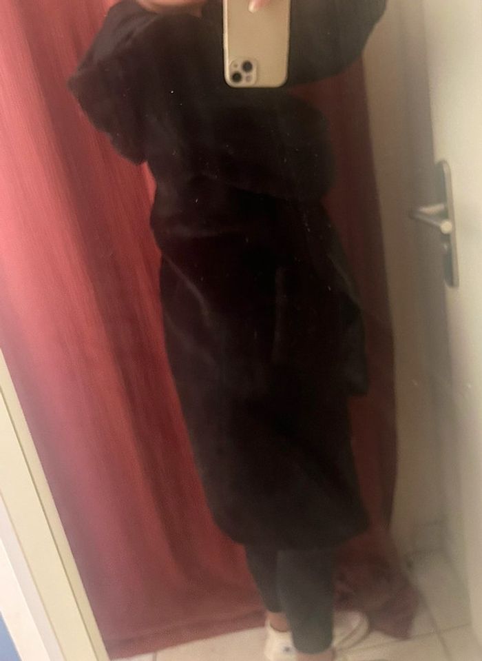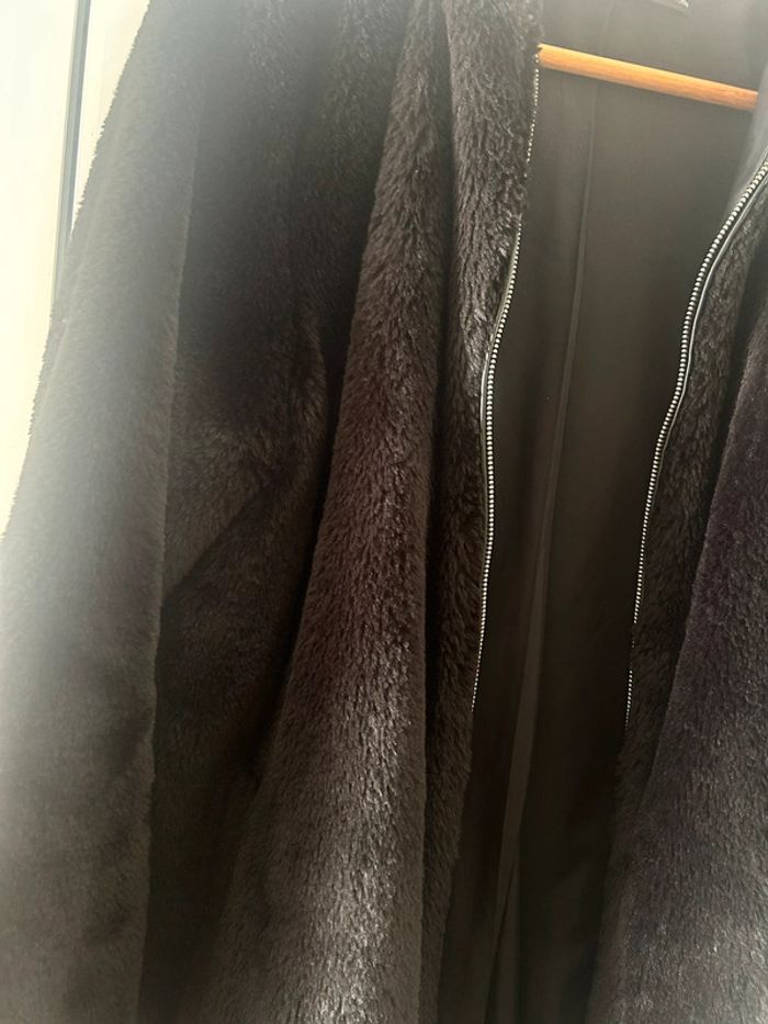Femme 👩🏻 Manteau/veste longue a capuche noir en fausse fourure. Zara taille XS 34/36 - photo numéro 11