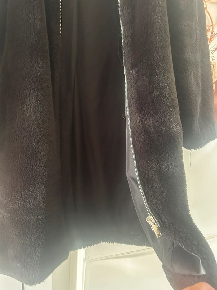 Femme 👩🏻 Manteau/veste longue a capuche noir en fausse fourure. Zara taille XS 34/36 - photo numéro 10