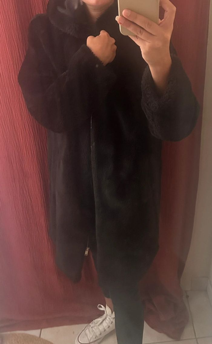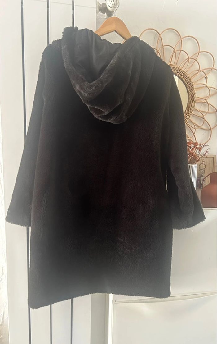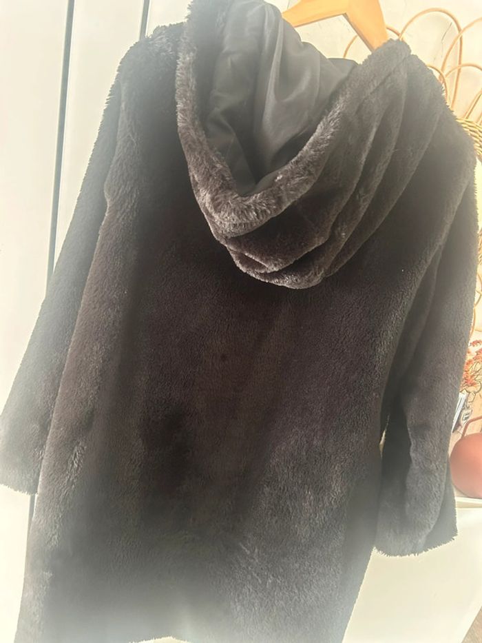 Femme 👩🏻 Manteau/veste longue a capuche noir en fausse fourure. Zara taille XS 34/36 - photo numéro 3