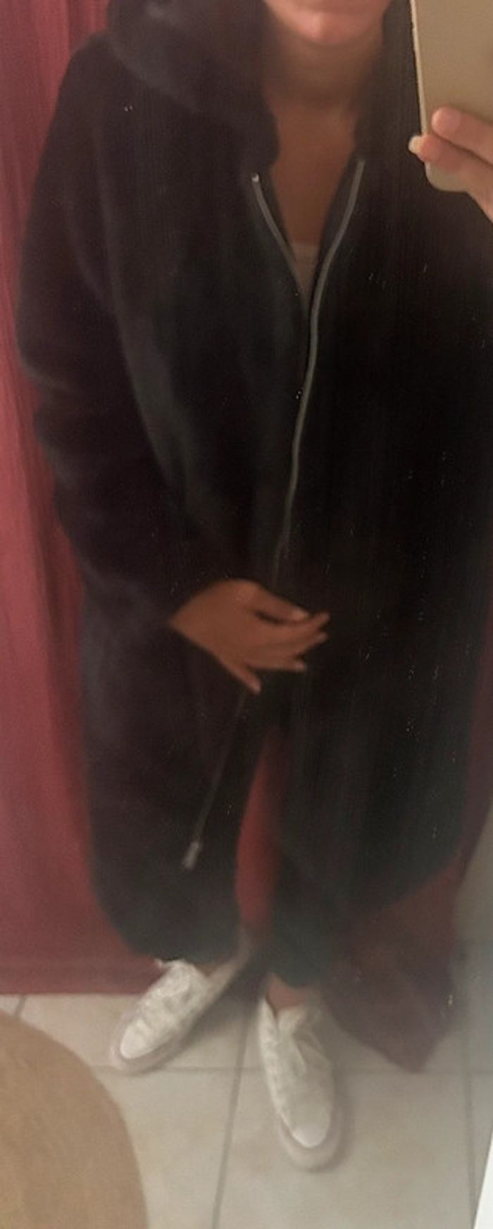 Manteau/veste longue polaire Fausse fourrure A capuche Noir Zara taille 34 En parfait état #dressvetfemme34 🎀 Merci de lire la description de mon profil avant tout contact ou achat 🎀