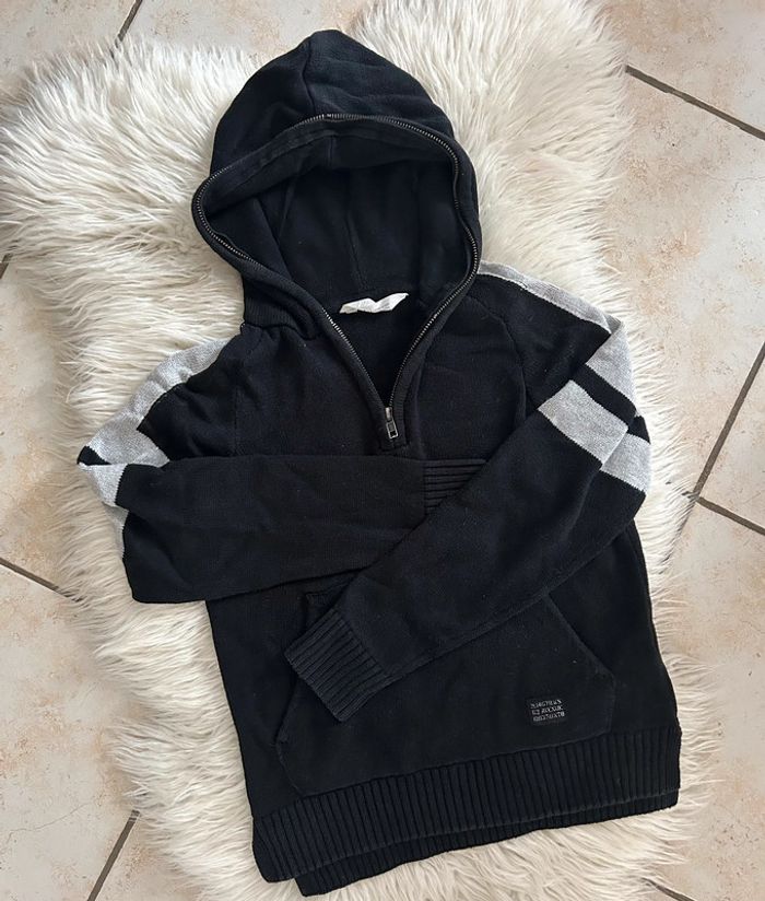 Garçon 👦🏻 pull a capuche en maille noir/gris h&m taille 8/10 ans - photo numéro 1