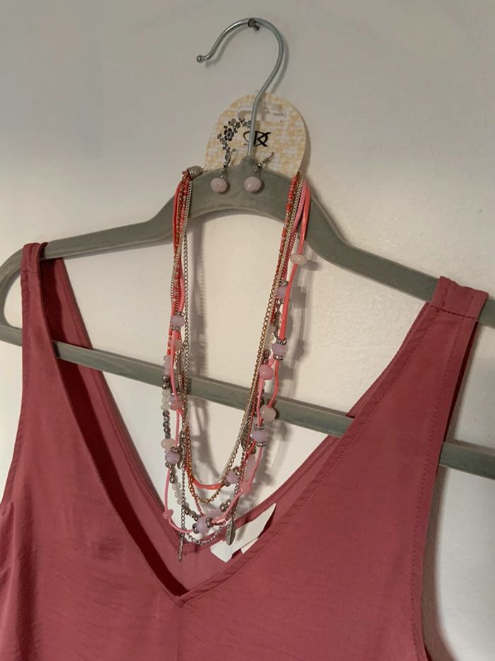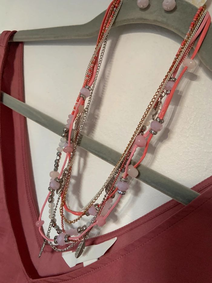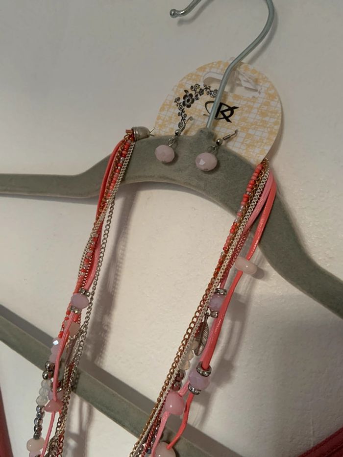 Bijoux - parure fantaisie collier + boucles d’oreilles - tons rose - photo numéro 2