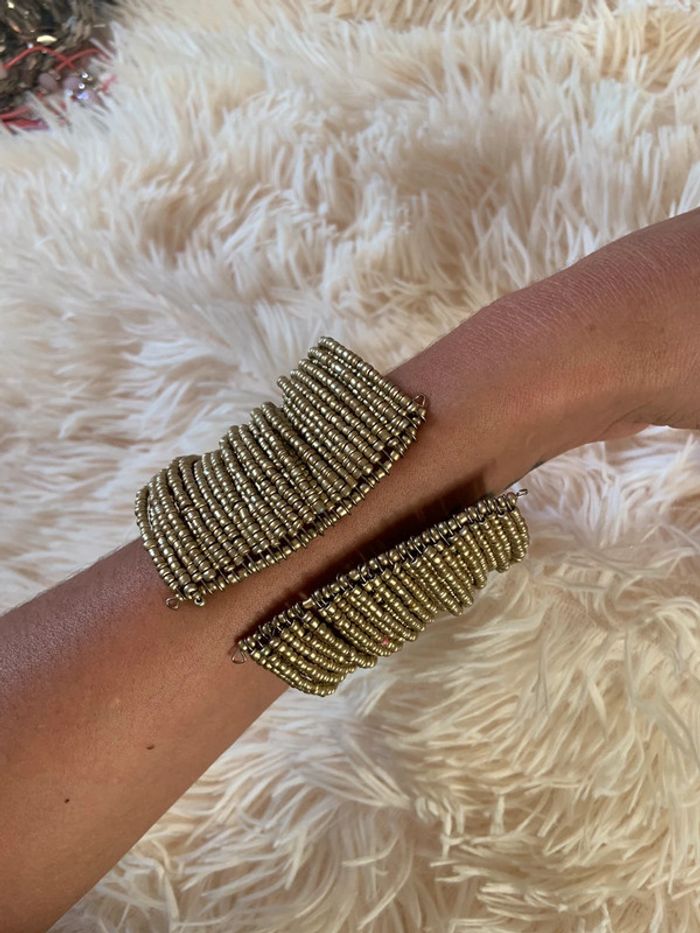 Bracelet manchette En perles fantaisie doré État neuf jamais porté ❌ NON NÉGOCIABLE #dressvetbijoux 🎀 Merci de lire la description de mon profil avant tout contact ou achat 🎀