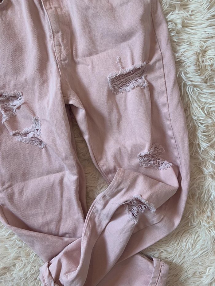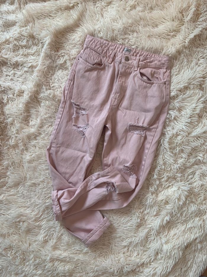 Jean mom Rose effet déchiré Neuf jamais mis Lavé 1x Skinny en bas Taille haute nombril Pimkie taille 34 #dressvetfemme34 🎀 Merci de lire la description de mon profil avant tout contact ou achat 🎀