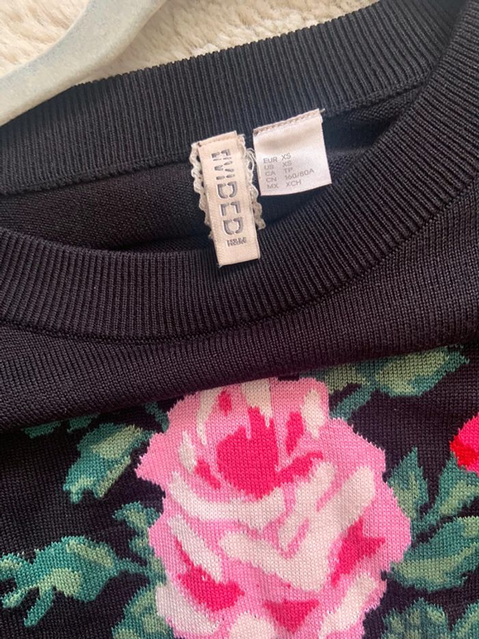 Femme 👩 Pull noir details fleurs/rose h&m taille 34 - photo numéro 2