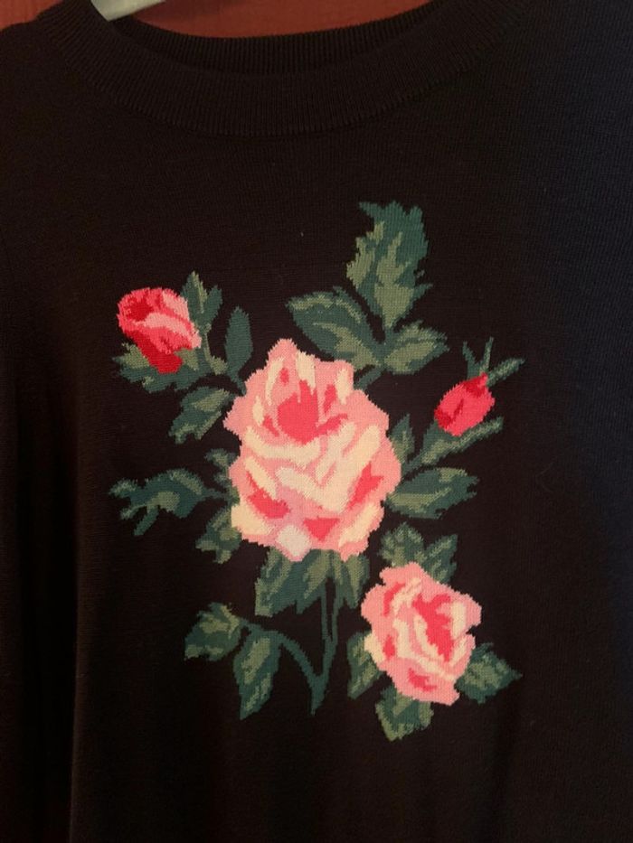 Femme 👩 Pull noir details fleurs/rose h&m taille 34 - photo numéro 4