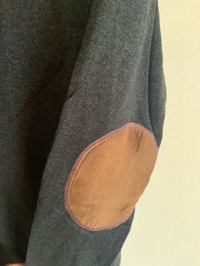 homme 👨 Pull a capuche gris avec coudières marron camel en tbe taille M #dressvethomme