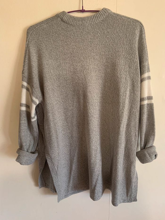 👩‍💼 FEMME 🎀 Pull H&M gris chiné et blanc en tbe comme neuf. fentes sur les côtés (1m60 cache les fesses) 🎀 ✔️ TBE 🏷 T34 💎 H&M 🟣 Gris/blanc 🌸 Pas de photos vetement porté #dressvetfemme34 🎀 Merci de lire la description de mon profil avant tout contact ou achat 🎀