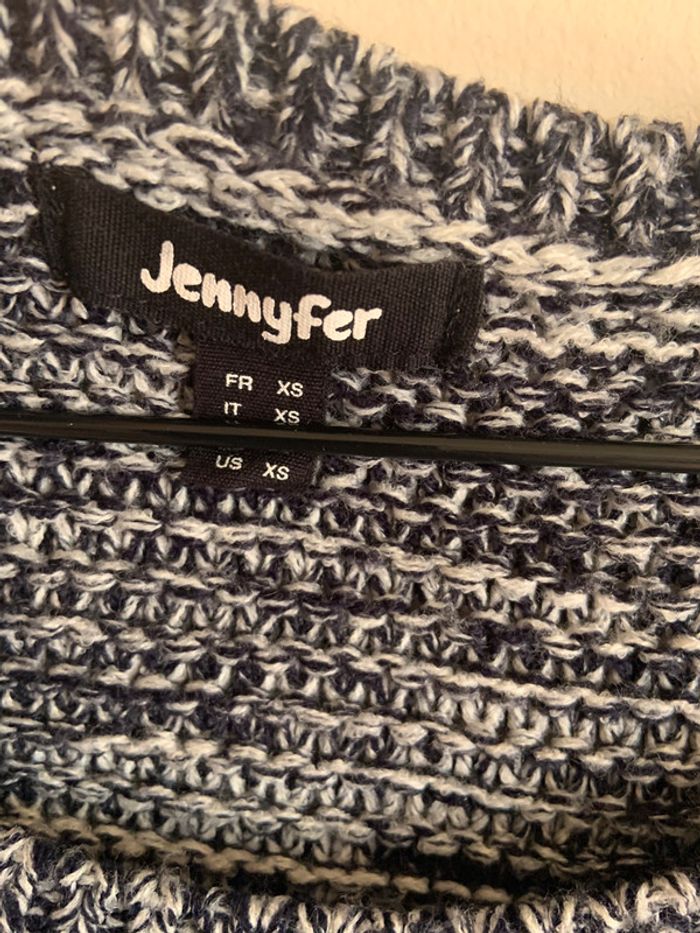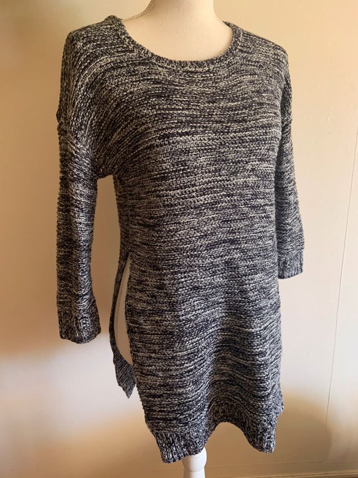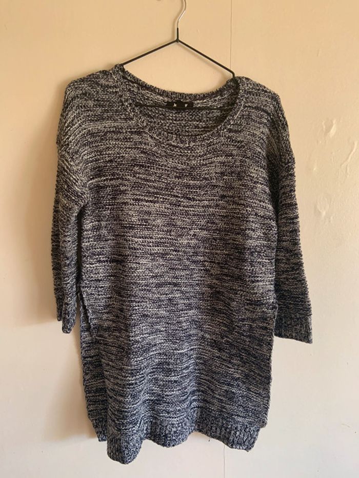 joli pull long bleu/blanc en maille taille 34 ouvert sur les côtés. comme neuf jamais mis #dressvetfemme34