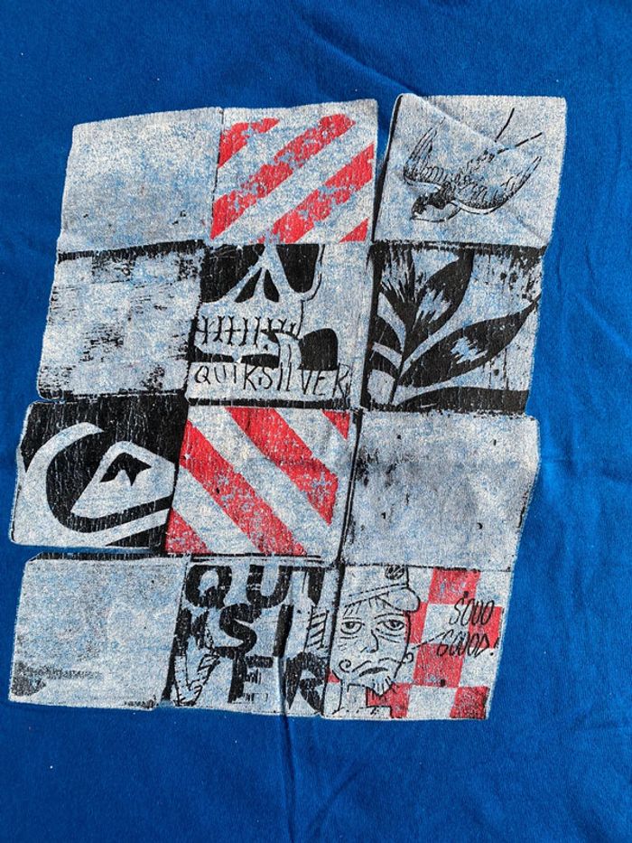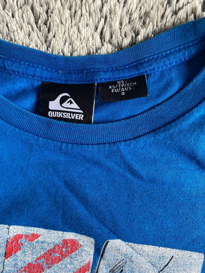 Tee-shirt bleu, de la marque QuickSilver, motif sur le devant, pas mal porté mais reste en bon état d’où le prox de vente - taille 8 ans #cath_moi8ansgarçon D'autres modèles et marques disponibles pour garçon du prématuré au 10 ans et pour fille du naissance au 6 ans dont Timberland, Bout'chou, Zara, Jacadi, Tape à l'œil, Okaidi, DKNY, Monoprix…