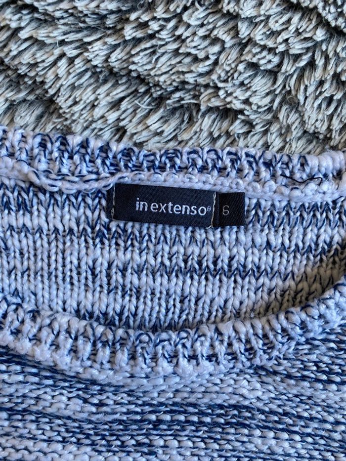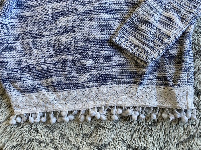 Pull en mailles bleu et blanc avec broderies sur le bas, en très bon état , de la marque In Extenso - taille 6 ans #cath_moi6ansfille D'autres modèles et marques disponibles pour garçon du prématuré au 12 ans, et pour fille du naissance au 8 ans dont Timberland, Bout'chou, Zara, Jacadi, Tape à l'œil, Okaidi, DKNY, …