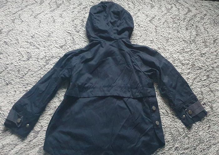 Veste style trench, de la marque Zara, couleur bleu marine, en très bon état et peu porté mais présente un petit accro sur la deuxième pression en partant du haut peu visible - taille 6 ans #cath_moi6ansfille D'autres modèles et marques disponibles pour garçon du prématuré au 12 ans et pour fille du naissance au 6 ans dont Timberland, Bout'chou, Zara, Jacadi, Tape à l'œil, Okaidi, DKNY, Monoprix…