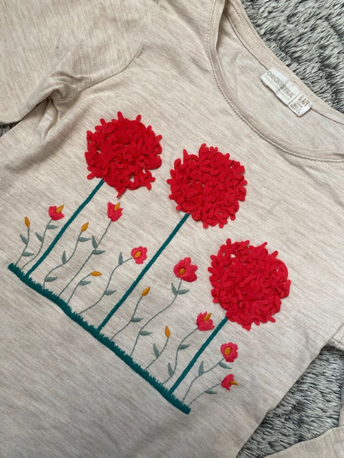 Tee-shirt manches longues , en bon état, de la marque Orchestra, couleur beige avec fleurs rouges - taille 6 ans #cath_moi6ansfille D'autres modèles et marques disponibles pour garçon du prématuré au 12 ans et pour fille du naissance au 6 ans dont Timberland, Bout'chou, Zara, Jacadi, Tape à l'œil, Okaidi, DKNY, Monoprix…