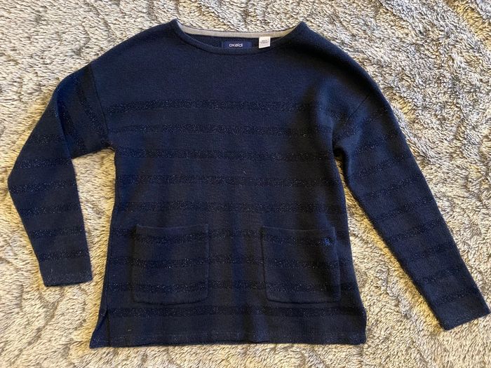 Pull bleu marine avec rayures brillantes, de la marque Okaidi, pas mal porté mais reste en bon état - taille 6 ans #cath_moi6ansfille D'autres modèles et marques disponibles pour garçon du prématuré au 12 ans et pour fille du naissance au 6 ans dont Timberland, Bout'chou, Zara, Jacadi, Tape à l'œil, Okaidi, DKNY, Monoprix…